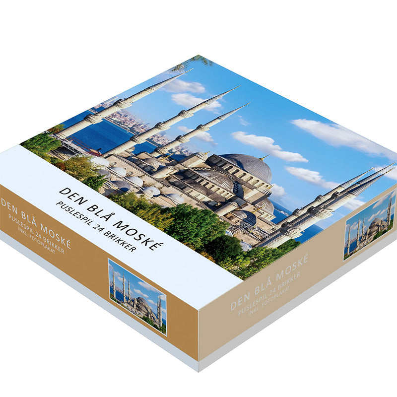 Den Blå Moské i Istanbul i Tyrkiet. Moskéen er også kendt som Sultan Ahmed Moské og er en ikonisk bygning og et islamisk arkitektonisk mesterværk. Moskéen er kendt for sine seks slanke minareter og sin imponerende kuppel. Bygget i perioden 1609 til 1616.